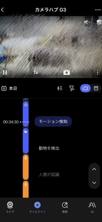 タイムライン表示では、検知されたイベントごとにタイムスタンプが記録されています。