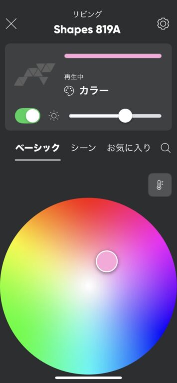 ナノリーフのアプリはカスタマイズ項目が非常に充実しており、操作画面を触っているだけで「次は何を試そうか」とワクワクが止まりません。特に音楽に合わせて光る機能や映像とリンクするスクリーンミラー機能は、一度体験するとその圧倒的な没入感の虜になること間違いなしです。タッチ機能搭載で、パネルを触って電源のオフや明るさを下げるといった操作もできます。