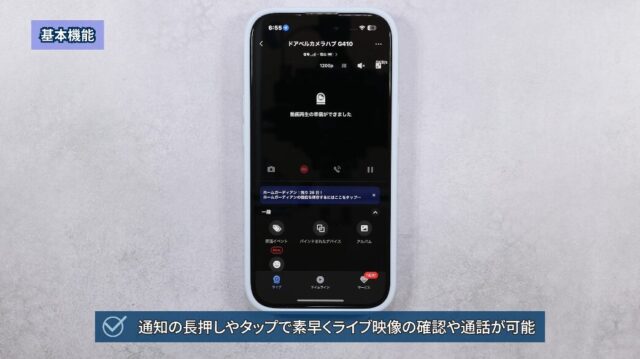 実際に使ってみて便利だったのは双方向通話機能です。外出中に宅配業者の対応ができたり、不在時に訪問者へ「また改めてお願いします」と伝えられるのは非常に便利でした。従来のインターホンとは違い、スマホさえあればどこにいても応答できる点が大きな魅力です。