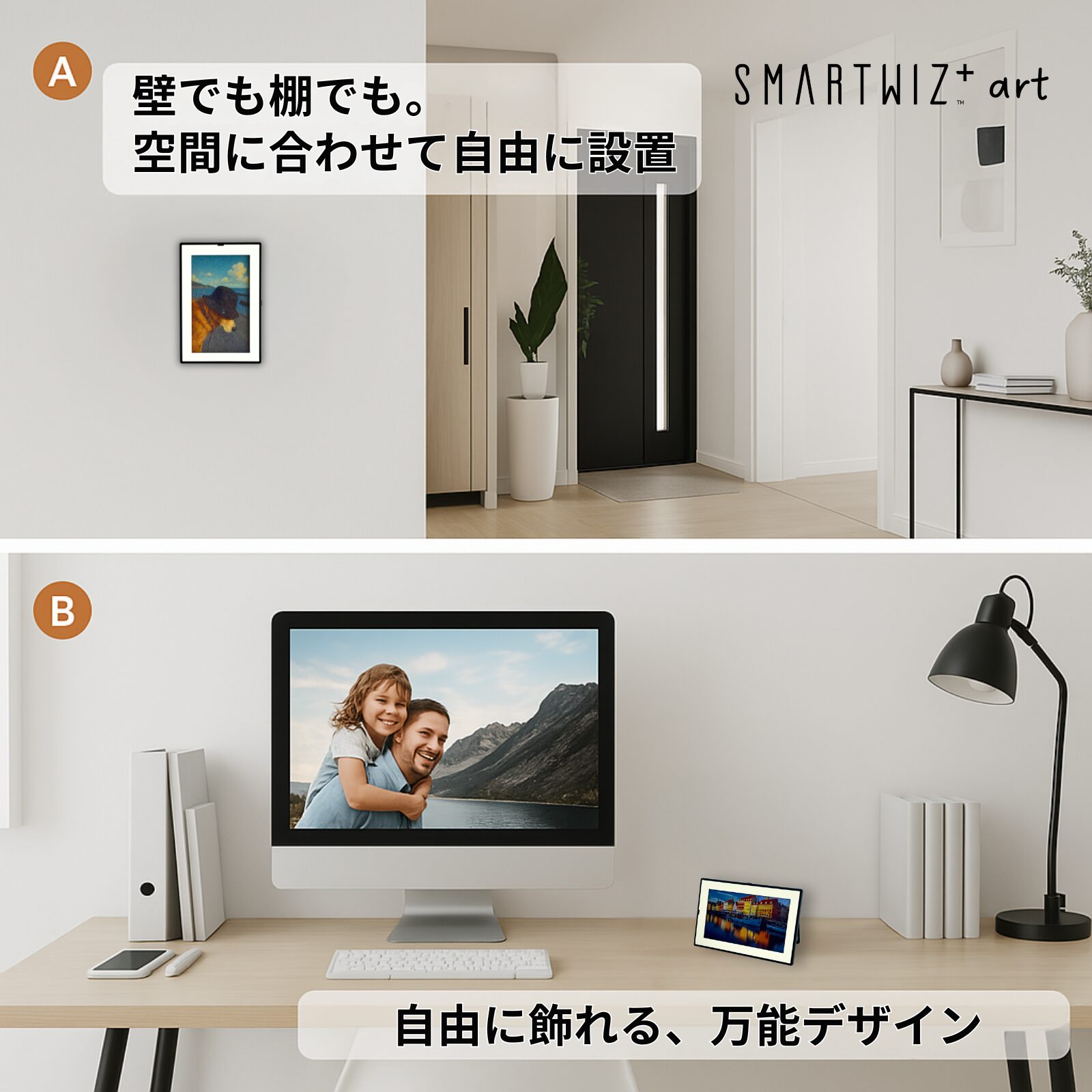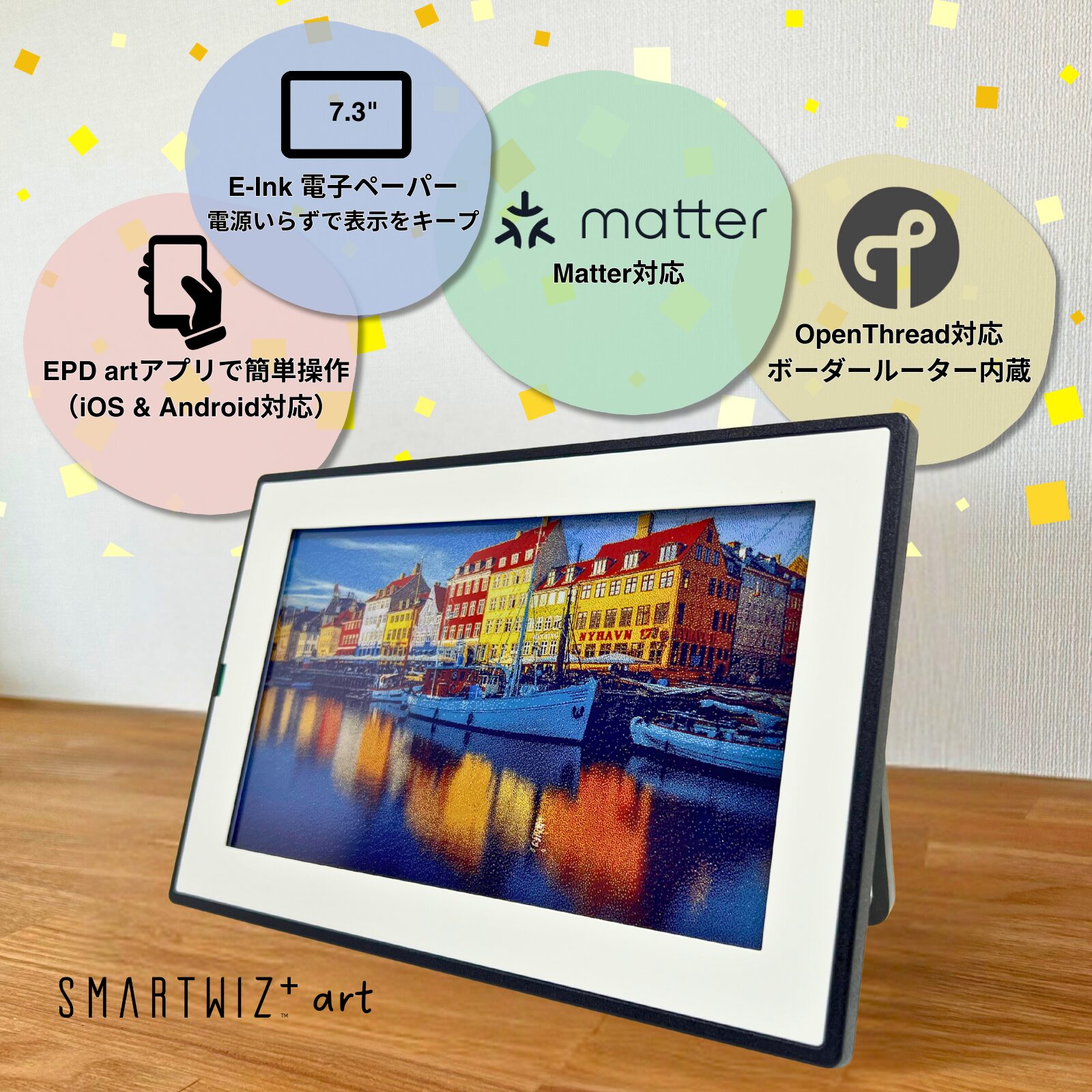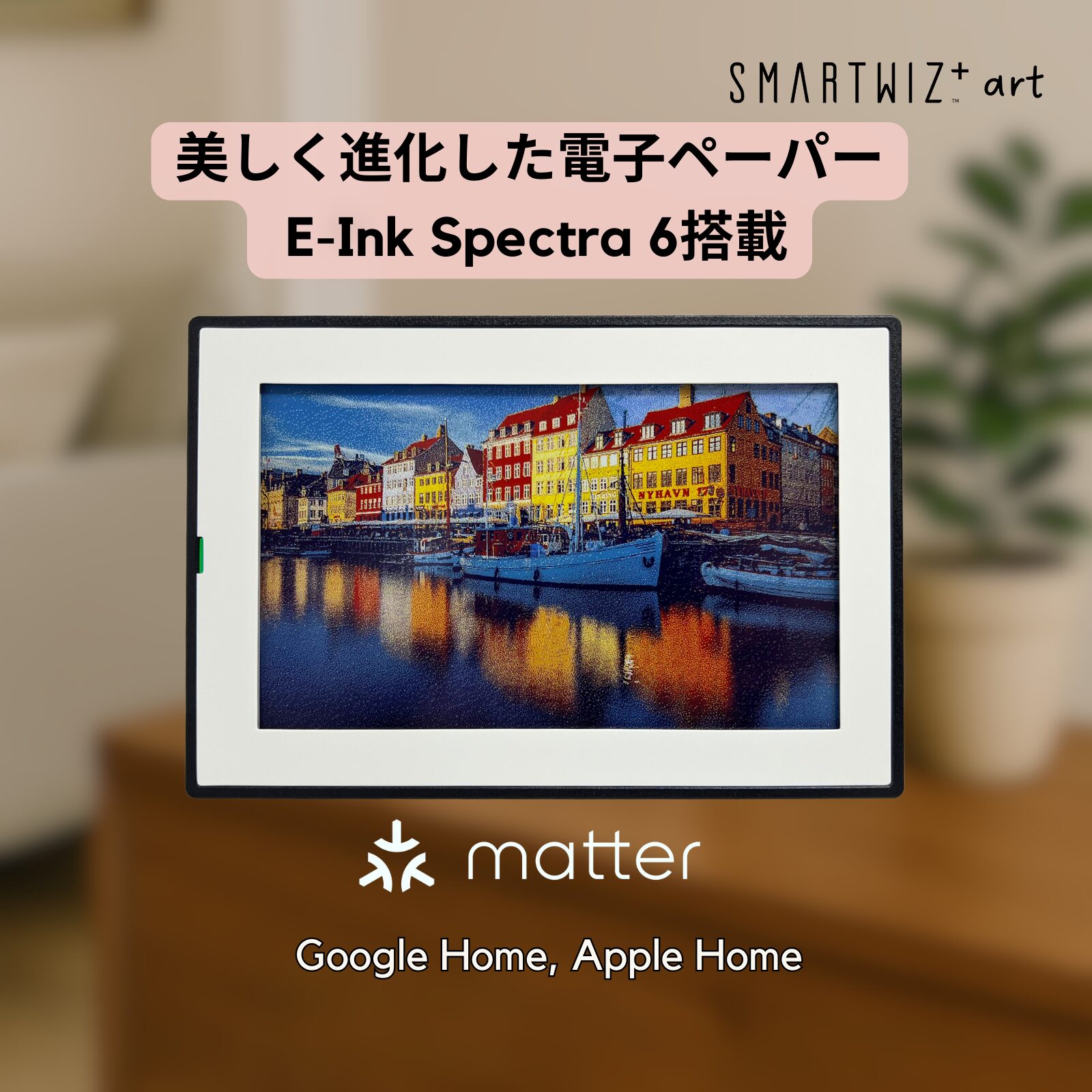 SMARTWIZ+art 7.3インチ デジタルアートフレーム E Ink Spectra 6 Matter対応 スマートハブ機能 長時間駆動 コードレス 写真 USB-C対応 iOS Android アプリ対応