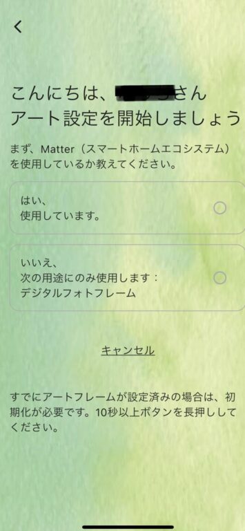 初期設定では「デジタルフォトフレームの用途にのみ使用」(Matterに接続しない)を選択